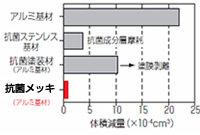 無機系材料は、有機系材料と比較すると、安全性、耐久性および抗菌効果の持続性が高いことから、昨今とくに関心が高まっています。けれども、多くの無機系抗菌材料の最大の問題点は、速効性に劣ることであり,また持続性も有機系よりは優れるものの不十分である点に問題がありました。これらの問題をクリアしたのが抗菌メッキです。